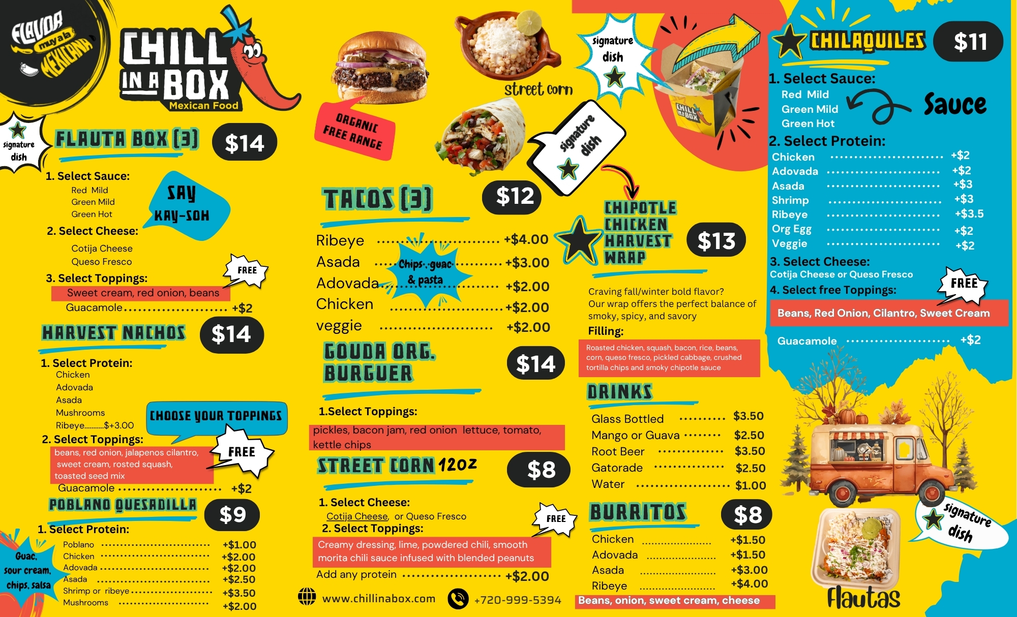 Craving something tasty? Skip the line and order directly from our menu using Clover! Whether you're at home, work, or out and about, it's never been easier to enjoy your favorite Chill in a Box dishes.